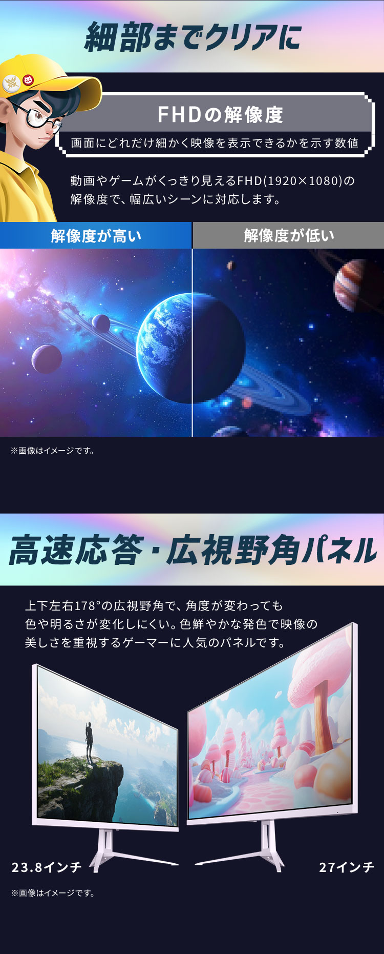 豊かな色彩表現により、色の違いを細部までしっかり映し出し、ゲームの世界をより鮮やかに・よりリアルに描写します。