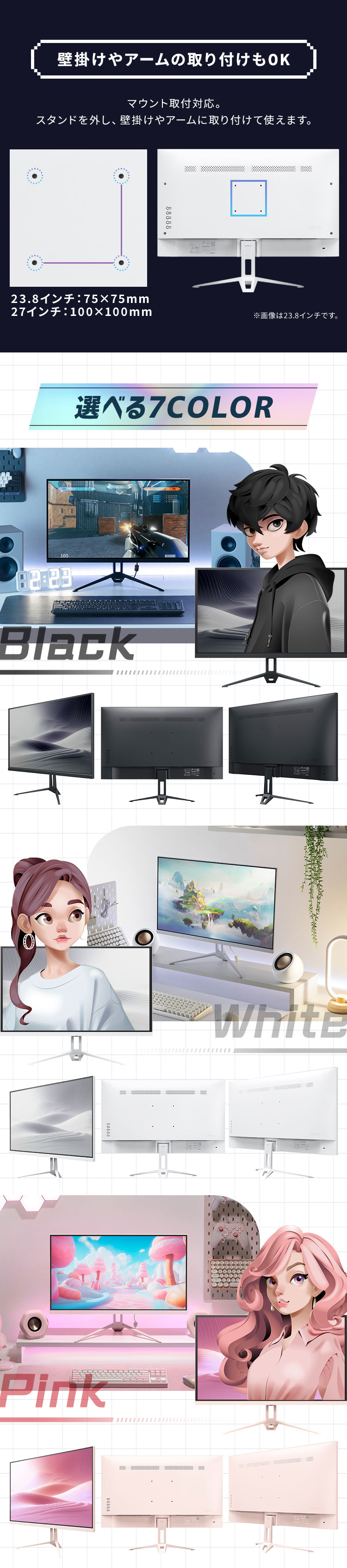 (検索用:モニター ゲーミングモニター 23.8インチ フルHD 200hz pcモニター ゲーミング ブラック ホワイト ピンク ブルー パソコンモニター 新品 液晶 ディスプレイ ノングレア 壁掛け アーム取付可 ゲーム 24インチ 相当 4967576817608 4967576817615 4967576817622 4967576817639 4967576817646 4967576817653 4967576817660)