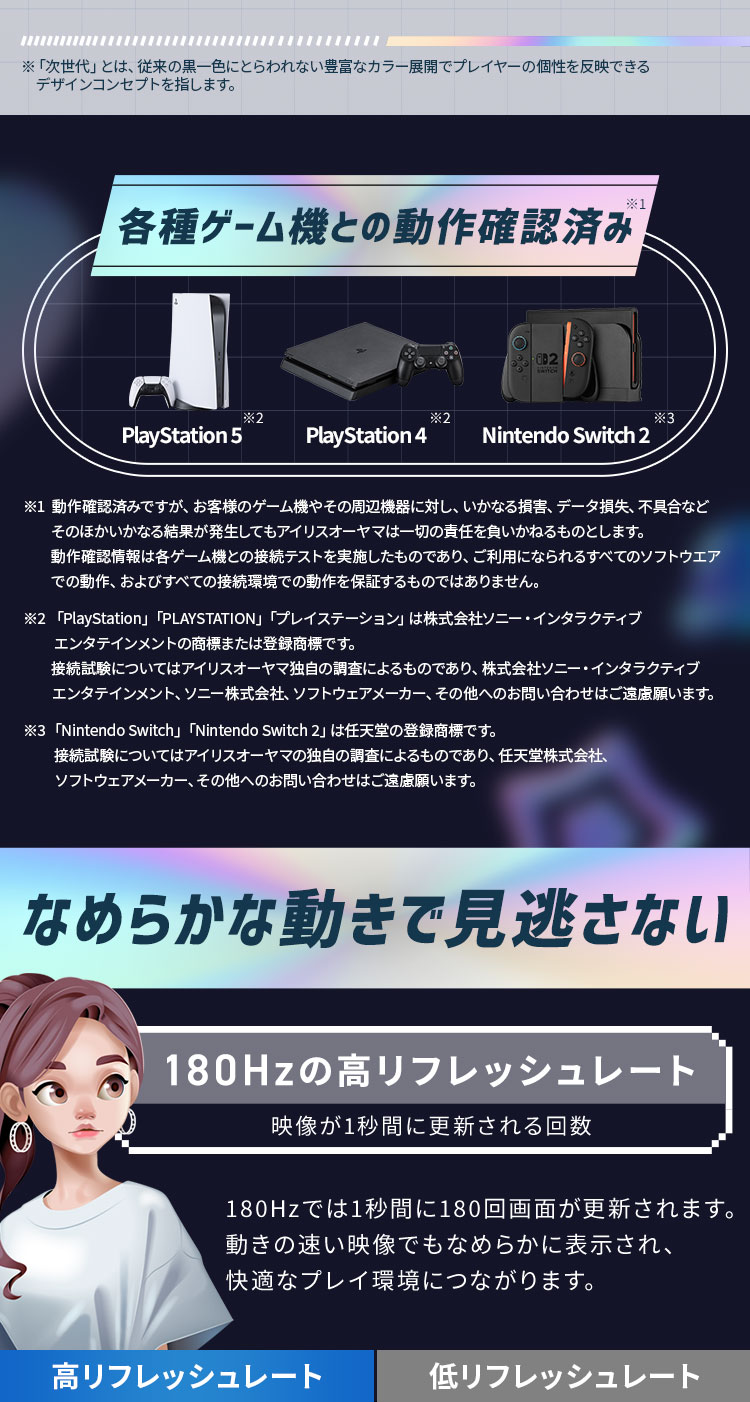 (※ディスプレイに接続する機器が、リフレッシュレート180Hz出力に対応している場合に限ります。)