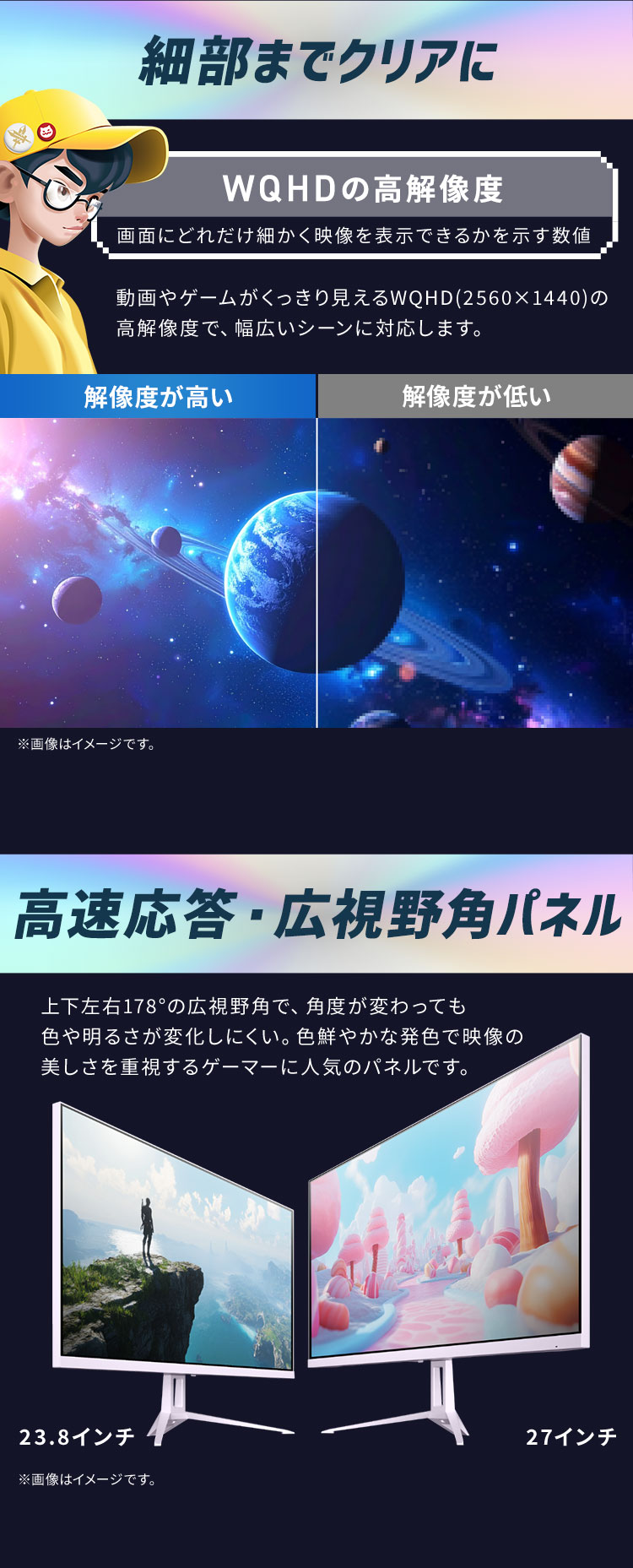 細部までクリアに見える高解像度[WQHD(2560×1440)]です。