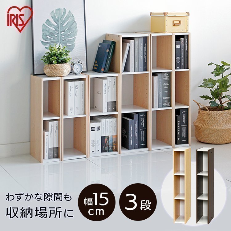 カラーボックス 収納ボックス 3段(幅15cm×高88cm)スペースカラーボックス UB-9015 (アイリスオーヤマ)隙間収納(見せる オープン)