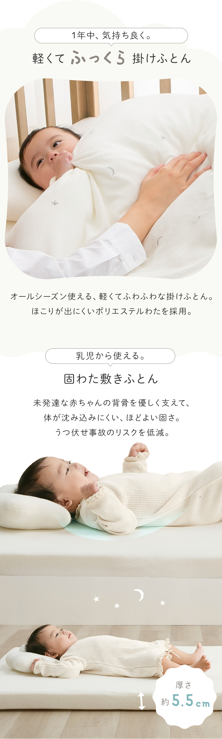 敷きふとん:ポリエステル100%(固綿 700g×2枚)