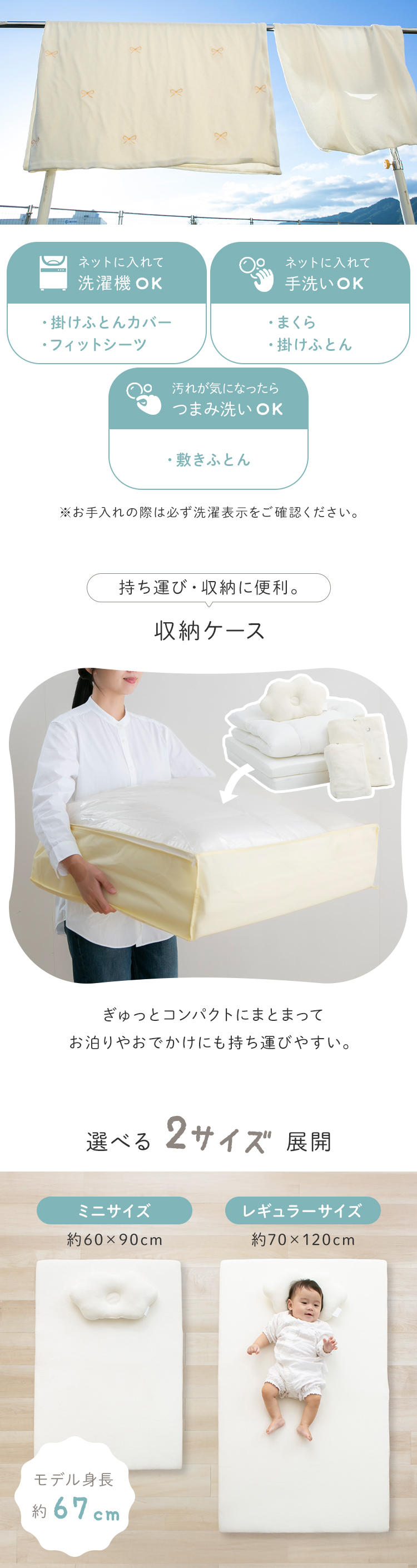 掛けふとん 、枕は手洗い可。