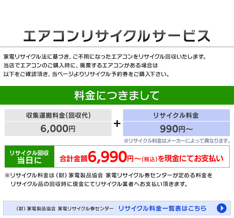 エアコンのリサイクル回収をご希望される方は、当ページよりリサイクル予約券をご購入下さい。
