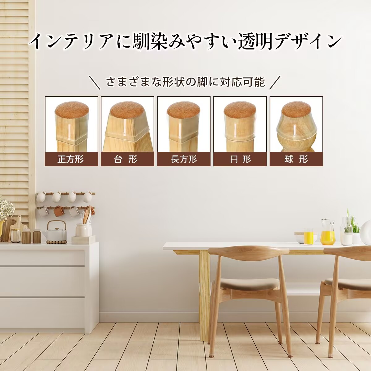2.多様な椅子脚形状とサイズに対応: