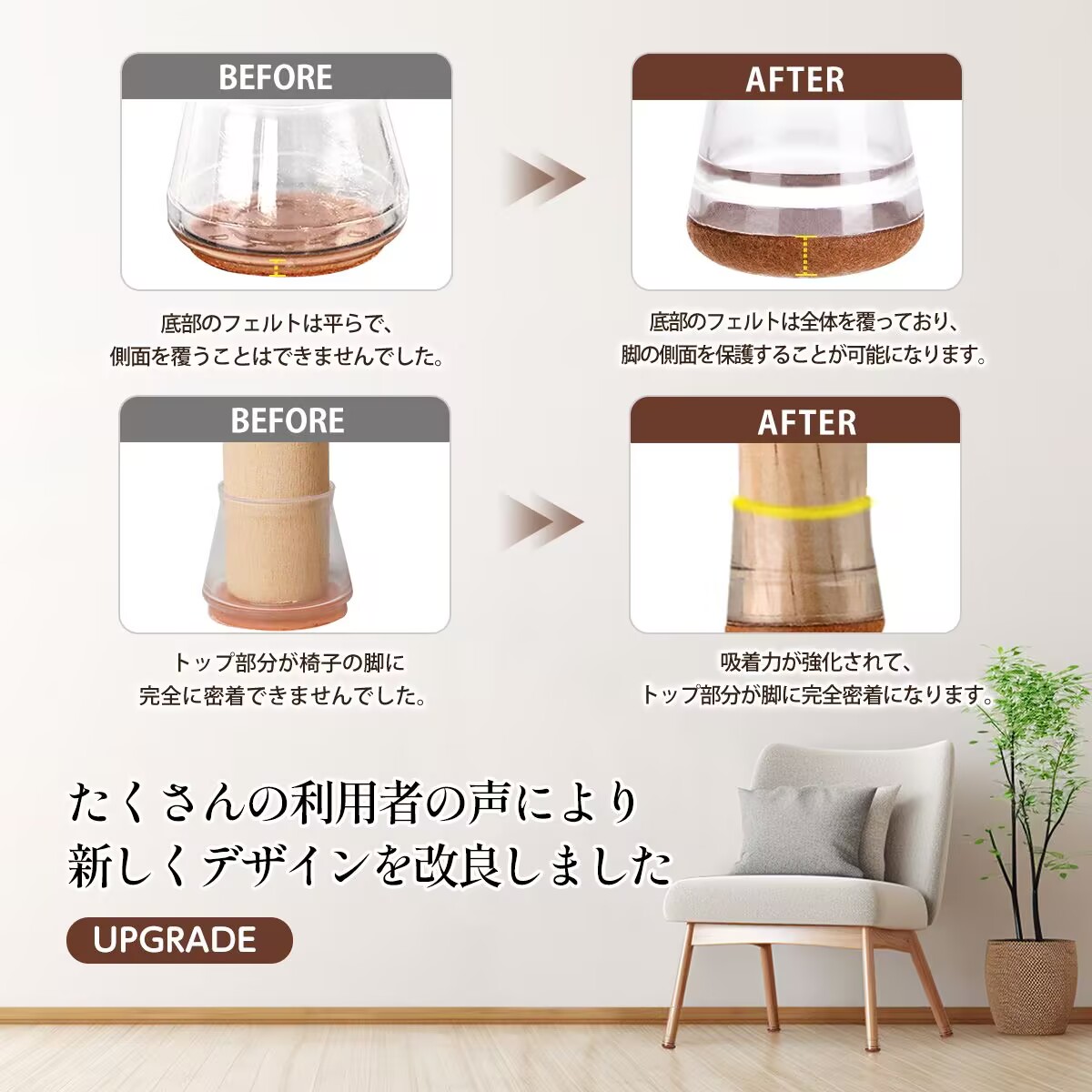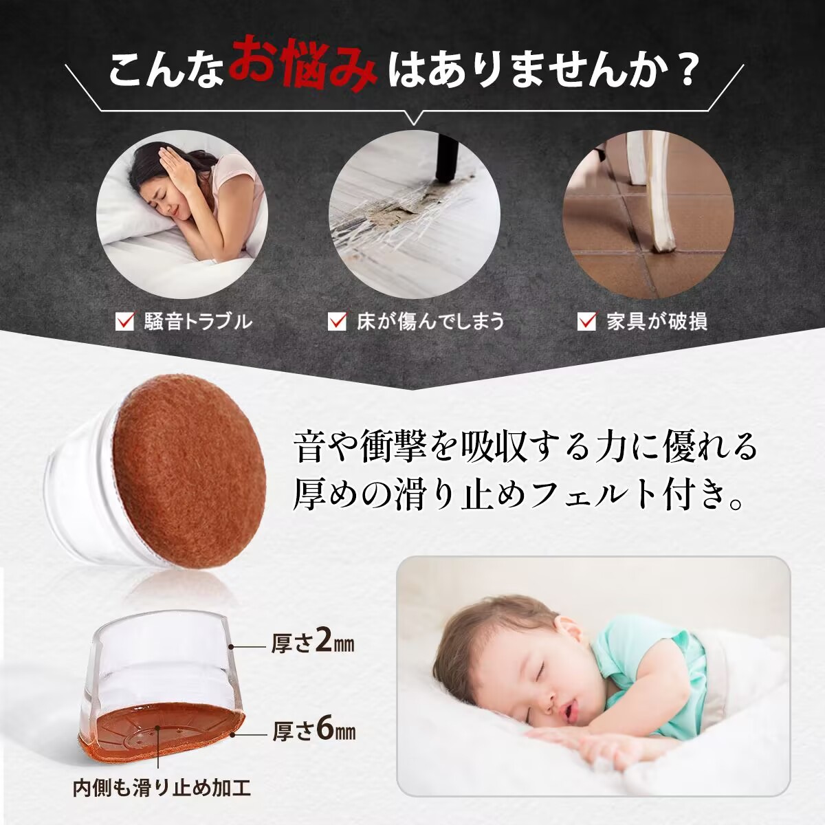 椅子脚カバーはシリコンとフェルトの素材を使用しています、椅子 足 傷防止、接着剤や釘は必要なく、女性でも簡単に取り付けることができます、椅子の脚カバー一体成型の特殊技術により、毛布とシリコンがしっかりと結合しており、脱落しにくい設計です。ワンセットに16個が含まれています。
