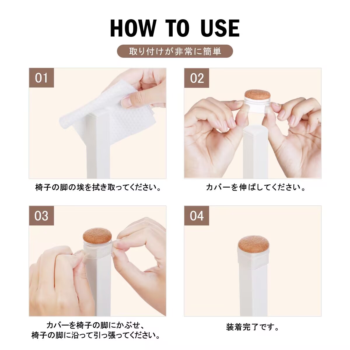 3.簡単な取り付けで脱落しにくい:椅子の脚カバーは非常に簡単に取り付けられます。工具は必要ありません。椅子 足 傷防止強力な伸縮性を持ち、手で伸ばして直接椅子の脚にかぶせるだけで取り付けできます。このシリコーン製の椅子脚カバーは強力な吸着力があり、安定性が確保されており、そのため脱落しにくいです。