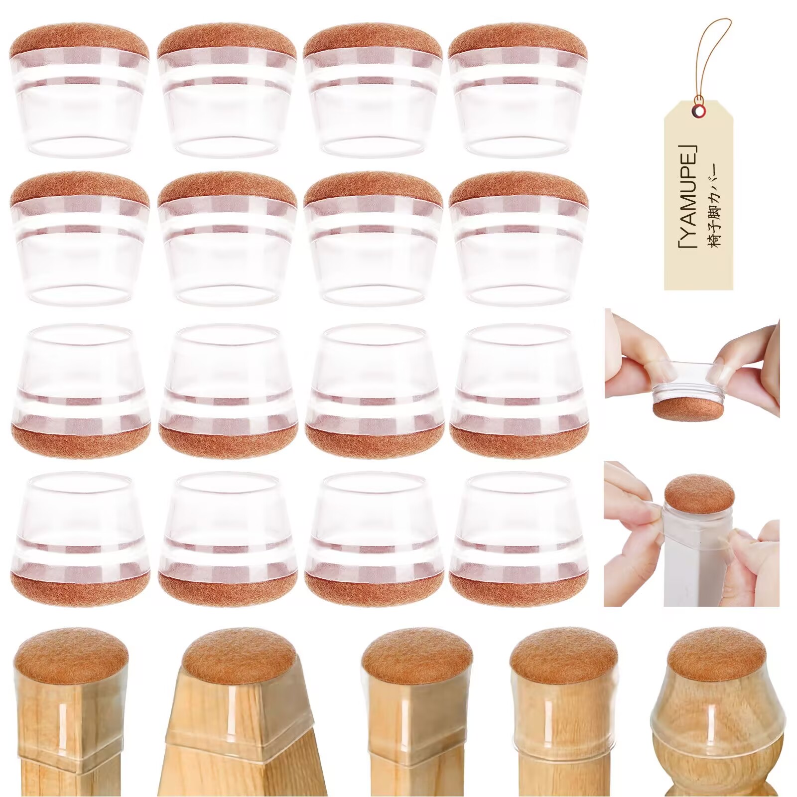 椅子脚カバー (16個セット)騒音防止 椅子 足 傷防止 耐摩耗性 椅子の脚カバー 床にぴったりフィット 椅子足キャップ 椅子脚直角と丸角対応 透明なシリコン素材