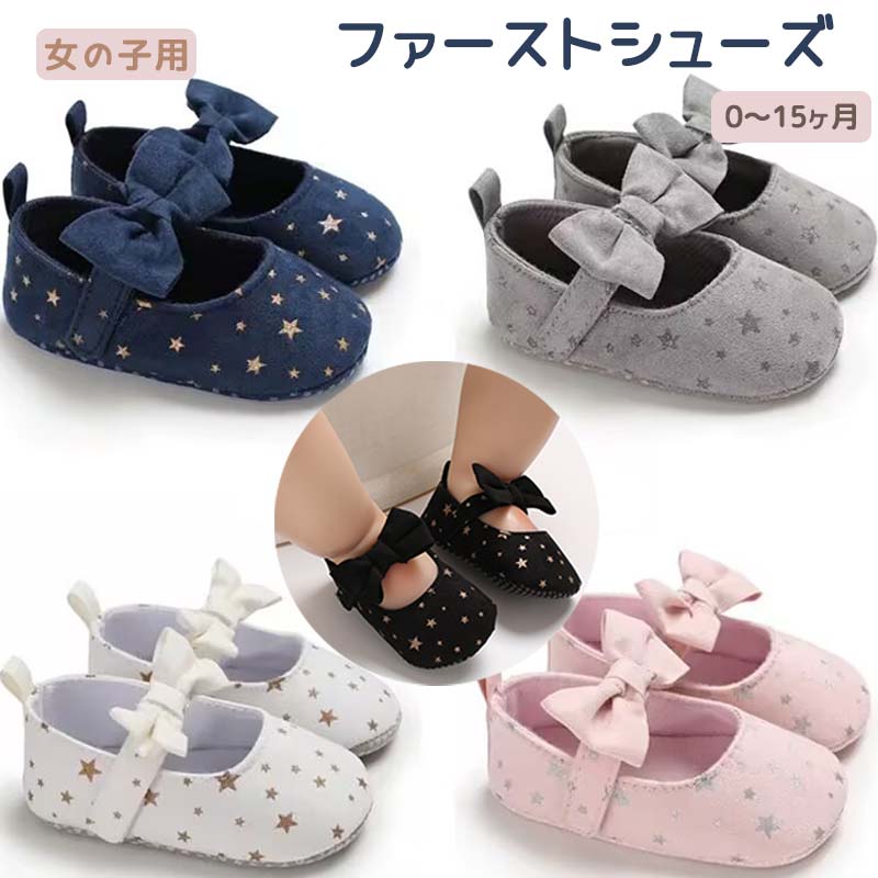 0〜15ヶ月 女の子 ベビーシューズ 蝶結び 歩き始めシューズ マジックテープ 柔らか底 通園用 プレゼント対応
