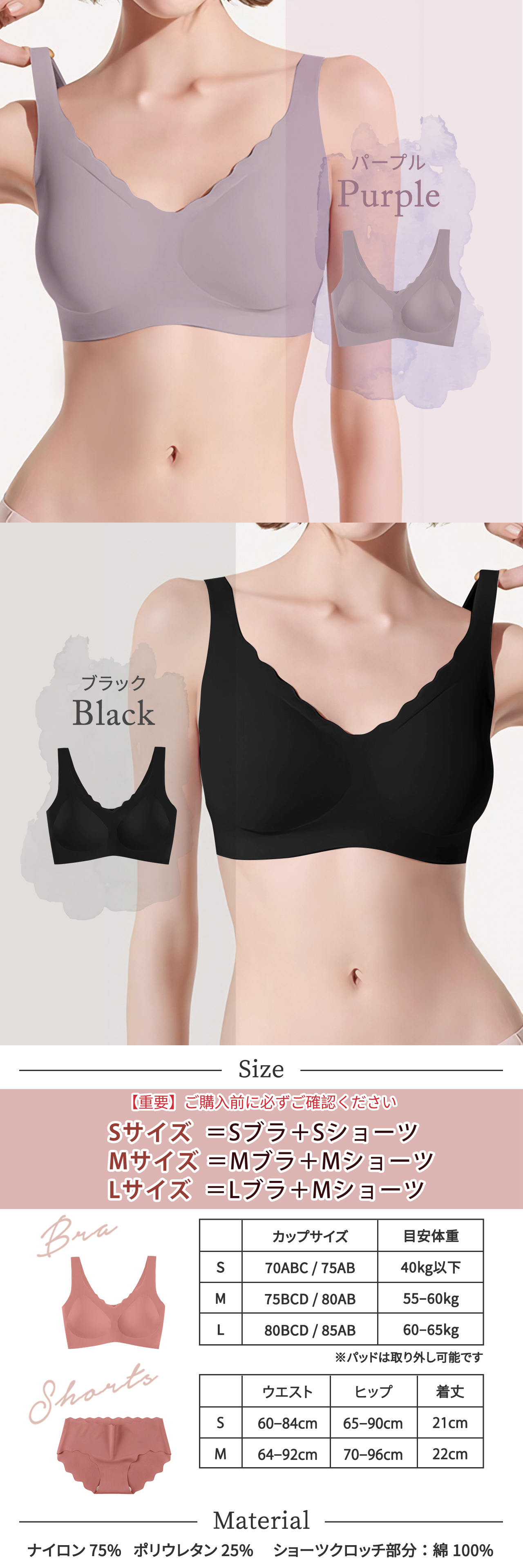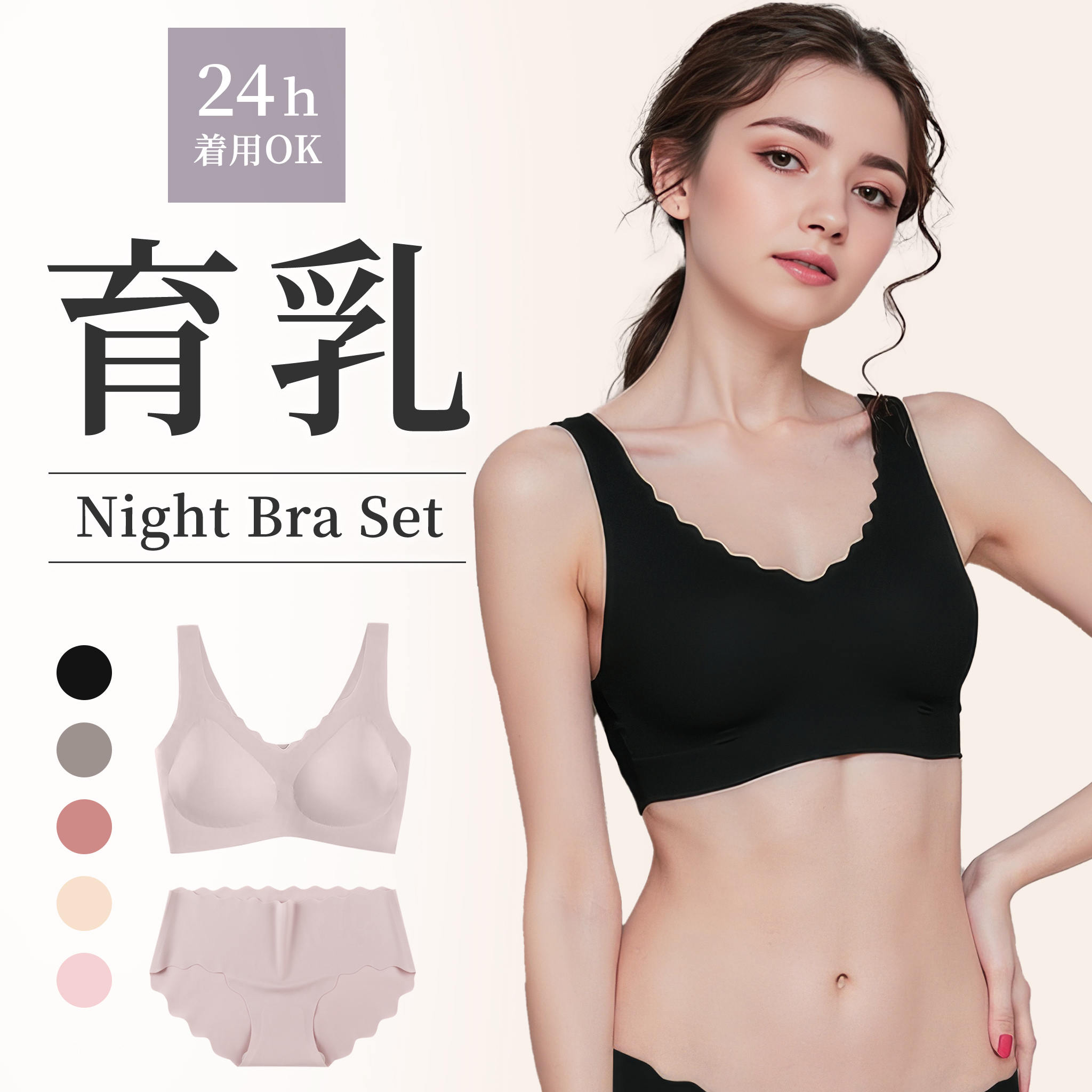 ナイトブラ ショーツセット 育乳ブラ ノンワイヤー 無縫製 上下セット 昼夜兼用 シームレスブラ レディース 下着 波型 ウエーブ 締付け感なし 脇肉スッキリ