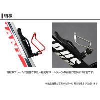 | 取付け方法 | ダウンチューブ、シートチューブ等、自転車フレームに設置された一般的なボトルケージの台座に、ボルトで簡単に取り付け可能です。 ※ボルト(ねじ)、六角レンチ等の工具はご用意下さい。 ※ボトルケージ取り付け孔があいていない車体には取り付けできません。 |