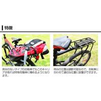 | 商品説明 | スポーツ自転車やコンパクト自転車のシートポストにワンタッチで取り付けが出来るリアキャリア(荷台)です。 クイックリリースレバー付きなので、工具なしで簡単に取り付けが出来ます。 荷物の落下を防ぐ便利なゴムひも付き!! 丈夫で軽量なアルミ製!通勤・通学に最適です。 プレート部分はサビに強く、泥除けにもなるので、 雨の日も安心です♪ |