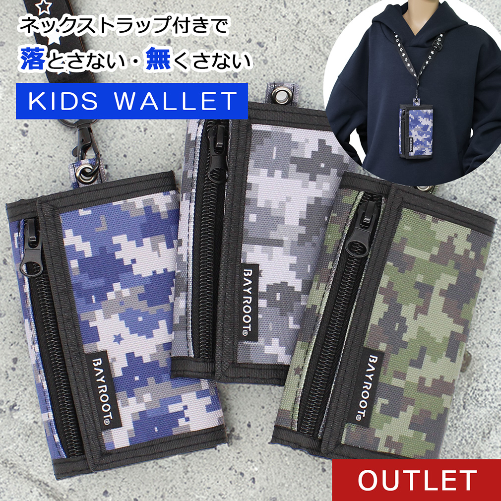 ●訳あり品 アウトレット 財布 子供 男の子 男子 紐付き 子ども キッズ 子供用 さいふ 小銭入れ 小学生 中学生 ネックストラップ 軽い デジタル 迷彩 BayRoot