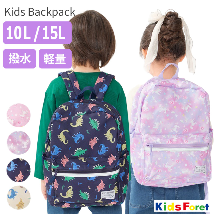 リュック 子供 女の子 男の子 キッズリュック 保育園 幼稚園 小学生 キッズ リュックサック はっ水加工 可愛い 恐竜 10L 15L Kids Foret