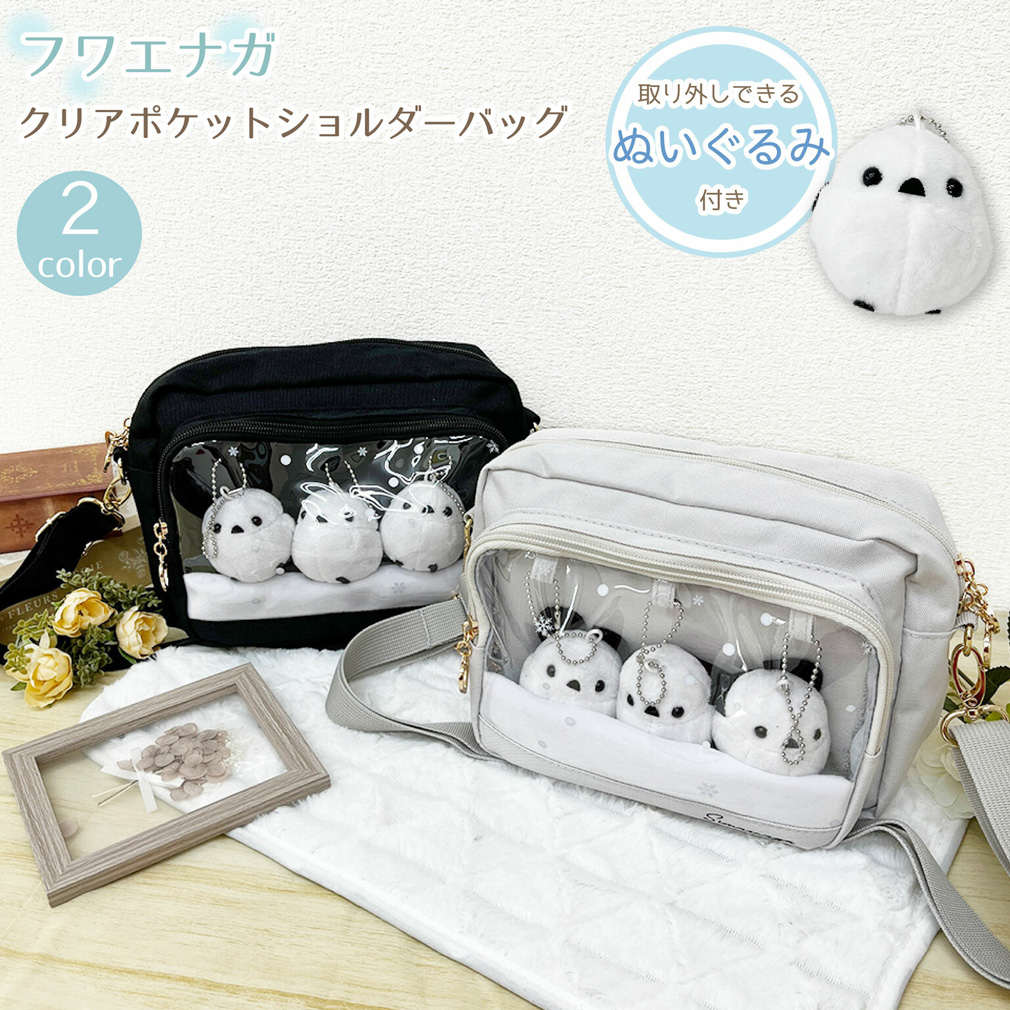 ショルダーバッグ 女の子 斜め掛けバッグ キッズ バッグ 子供 小学生 シマエナガ ぬいぐるみ付き 推し活 クリアポケット 横型