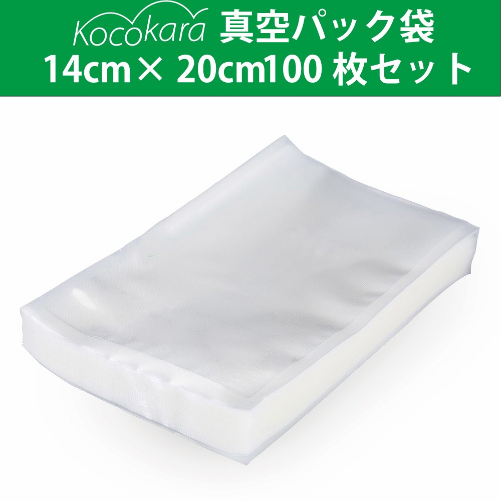 Kocokara 真空パック袋 14cm×20cm 100枚 冷凍 電子レンジ 湯煎 対応真空パック機専用袋 真空ビニール 鮮度長持ち 食品保存 低温調理 PA+PE素材 業務用 家庭用