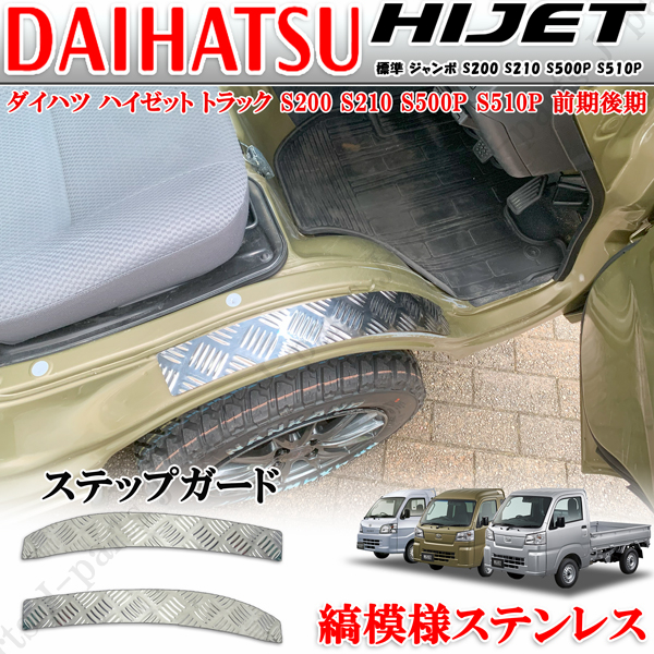 ※ハイゼットトラック、ハイゼットジャンボ ドアステップ部分の左右に貼り付けるだけのステンレスプレート スカッフプレート ガーニッシュ左右セットです。 |