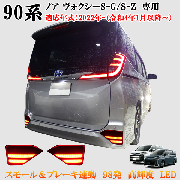 トヨタ ノア ヴォクシー 90系 リア 高輝度 LED リフレクター スモール&ブレーキ連動発光 ポジション 連動 2段階点灯 左右 ※トヨタ ノア ヴォクシー 90系 S-G/S-Z専用 リア LEDリフレクター ブレーキ&スモール連動 高輝度 LED ポジション 連動 2段階点灯 左右セット ●後続車へのアピール度抜群 夜間や濃霧や大雨や渋滞最後尾などに追突防止などの効果もアップします!安全性、視認性アップに! 【商品説明】 ●ヴォクシー ノア 90系 S-G/S-Z専用 ●適応年式:2022年-(令和4年1月以降〜)ノア ヴォクシー共通 ●ブレーキ&スモール連動 ●スモール点灯時 →70%発光 ●ブレーキ点灯時 →100%発光 【配線説明】 赤色配線 →ブレーキ配線に接続 黄色配線 →スモール配線に接続 黒色配線 →アース配線に接続 ※車検時には、配線をギボシ接続から外し、点灯させないように処理をしてください。 ●左右セット 全49発 LED ※純正のリフレクター同等設計 純正リフレクターを外して差し替え装着するタイプ。 ※材質 カバーABS樹脂製 ※車検時には点灯させない状態で対応できます。 反射板付き。 ※こちらは発送のみの扱いになりますのでお引き取り等は対応しておりません。 ※その他、保管品等での関係で細かい擦れ等がある場合がありますので、完璧をお求めの方、神経質な方はご参加ご遠慮ください。 ※こちら装着に関しては各自の自己責任でお願いいたします。当方でサポートはできません。詳しい説明はいたしかねますので装着に自信のない方は専門業者様にご依頼ください。 ●管理番号 2922 90系 ノア ヴォクシー リア LED リフレクター 左右 |