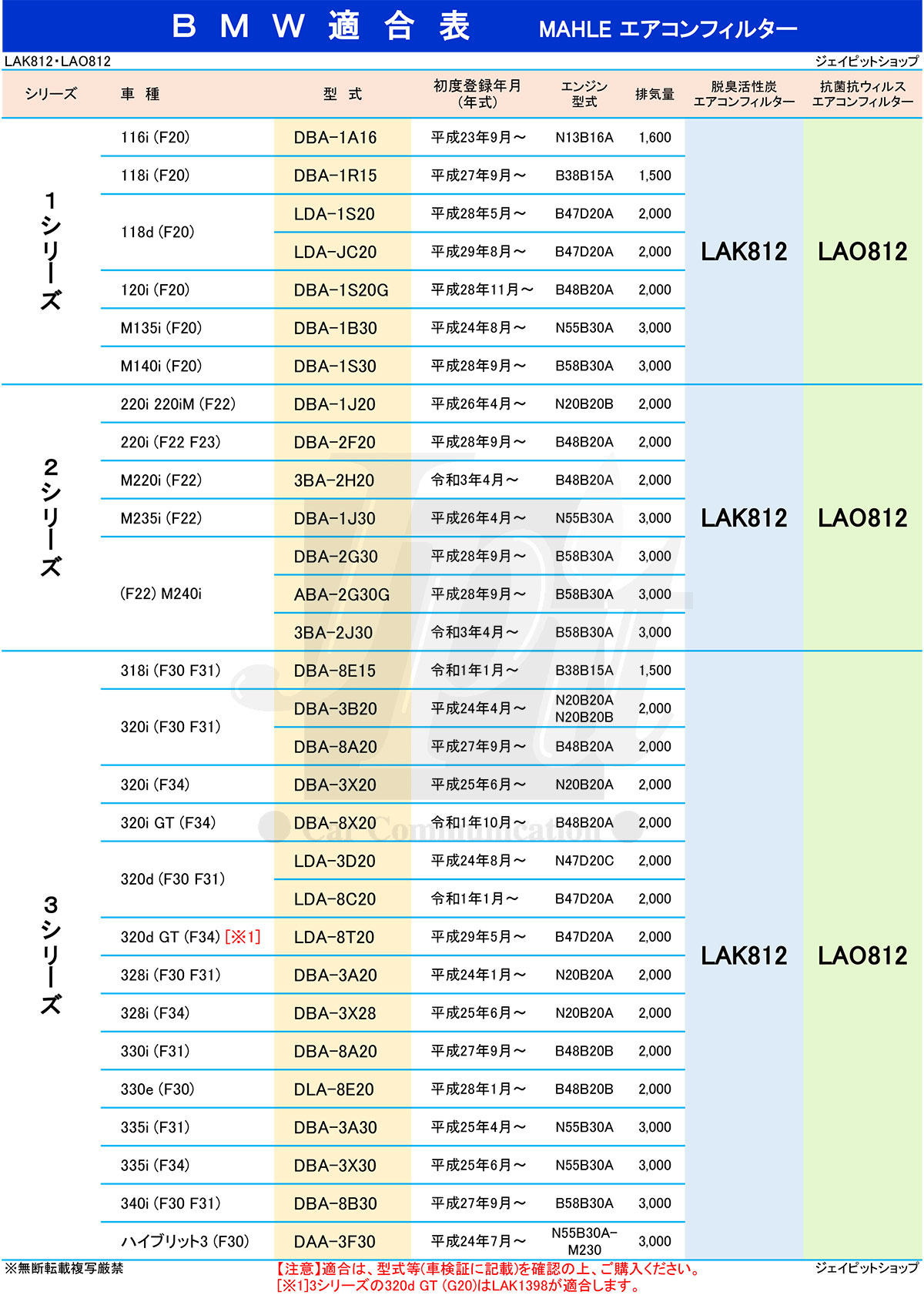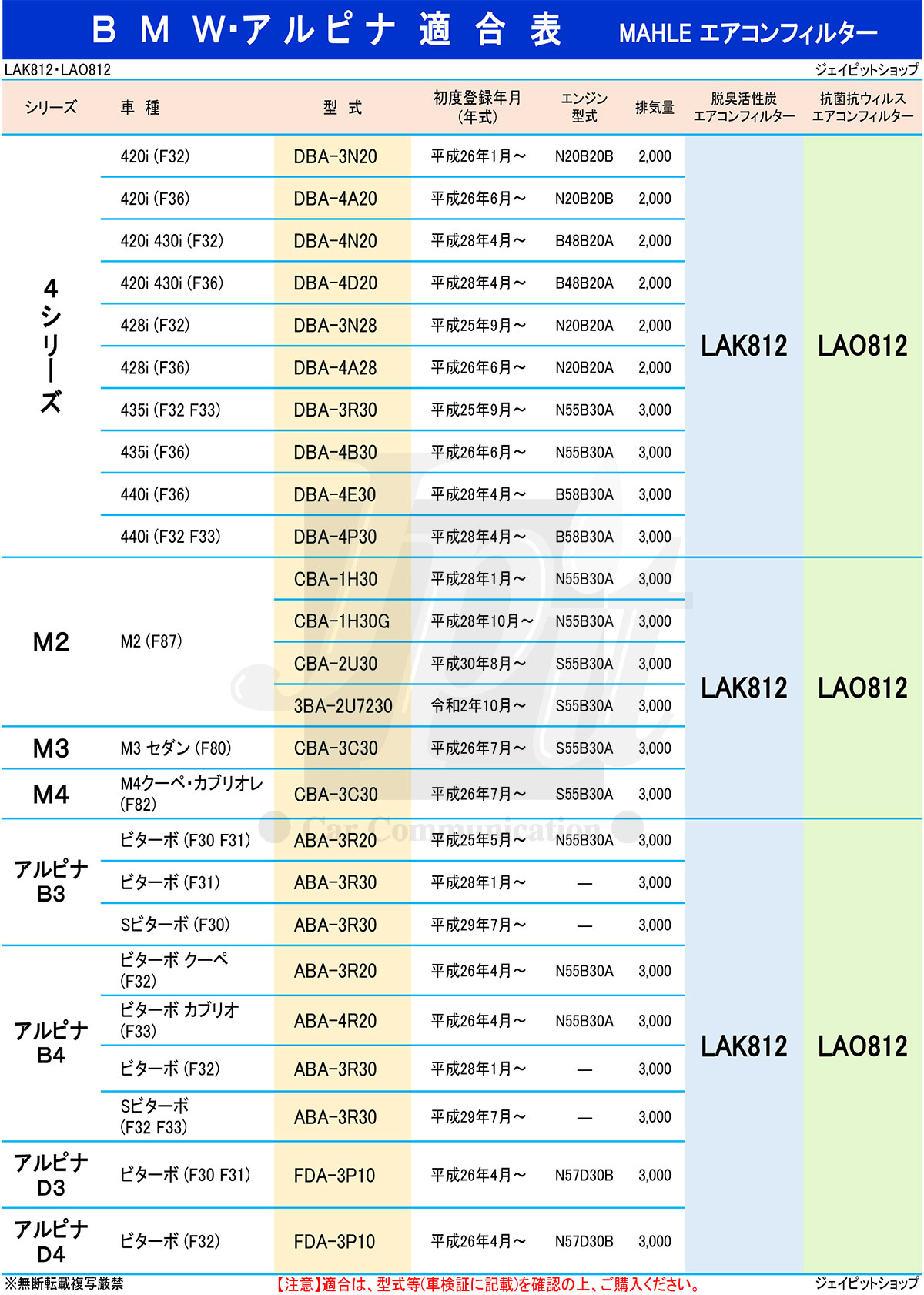 【注意】適合は、画像の適合表の型式や初度登録年月等(車検証に記載)をご確認に上、ご購入ください。