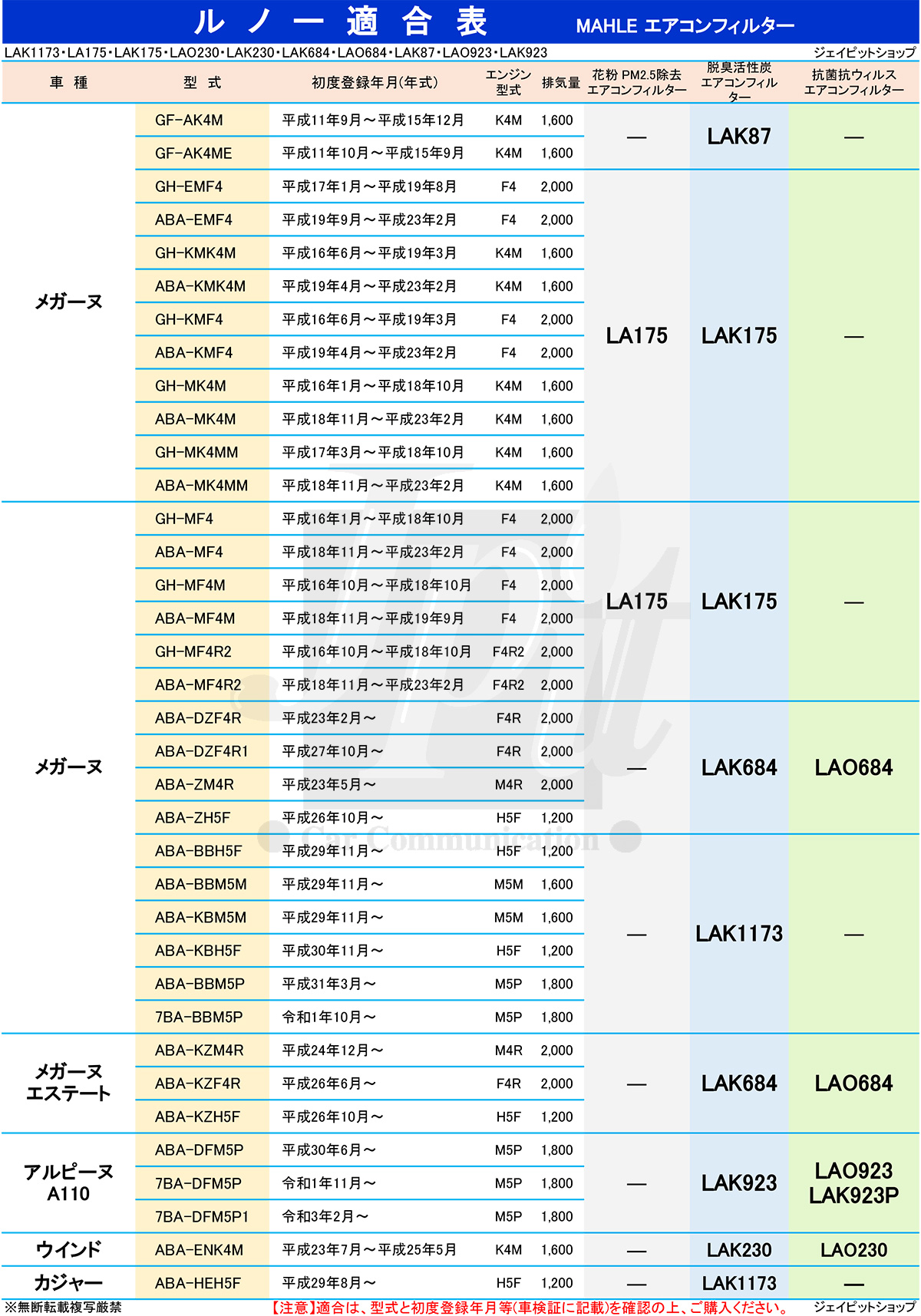 【注意】適合は、画像の適合表の型式や初度登録年月等(車検証に記載)をご確認の上、ご購入ください。