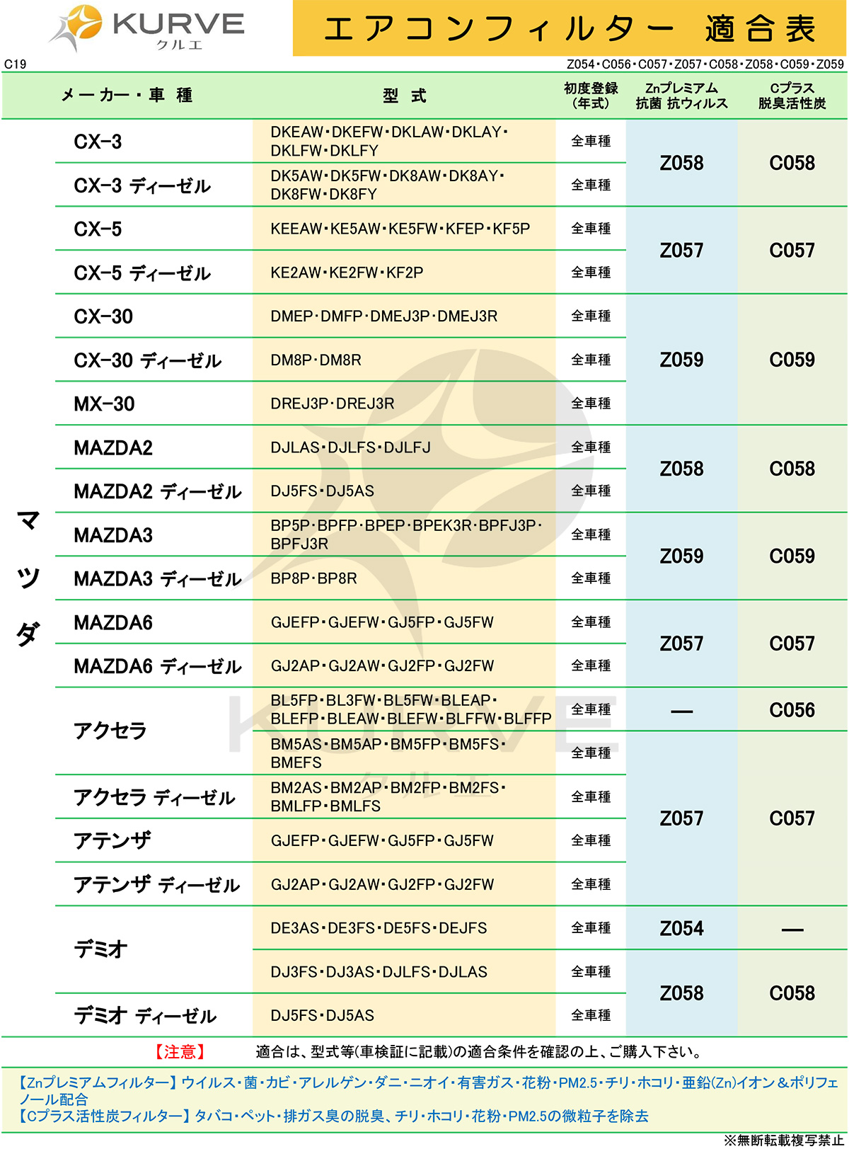 ◆KURVE エアコンフィルター Znプレミアム