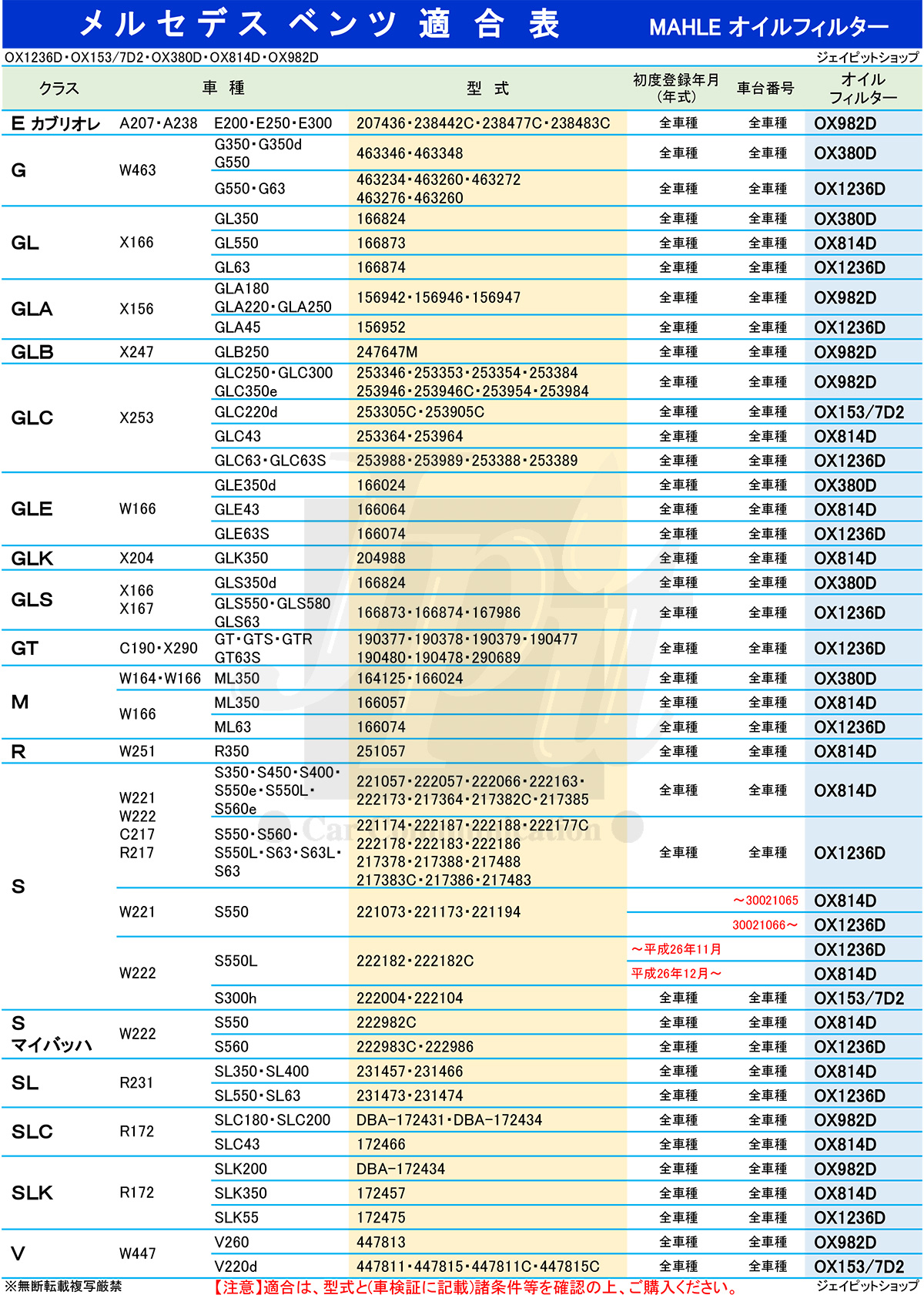 【注意】適合は、画像の適合表の型式と初度登録年月等(車検証に記載)をご確認の上、ご購入ください。