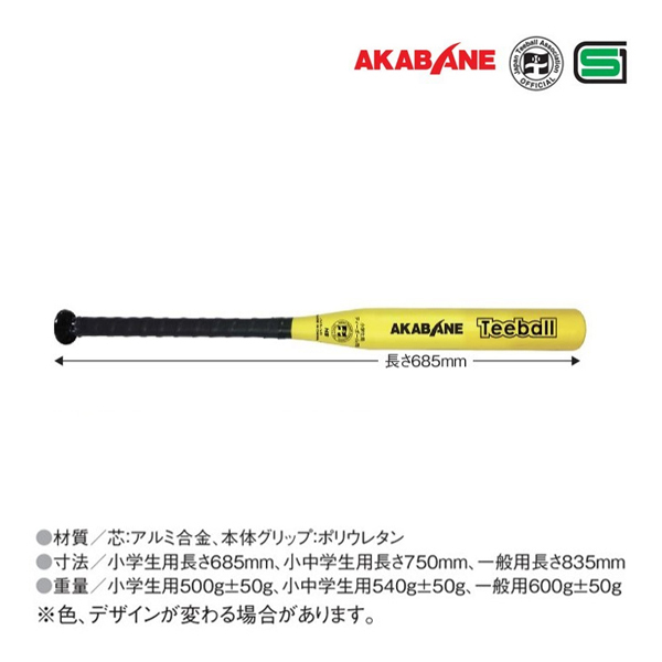 アカバネ ティーボール協会公認・製品安全協会公認 ティーバット 小学生用 イエロー <2025CON>