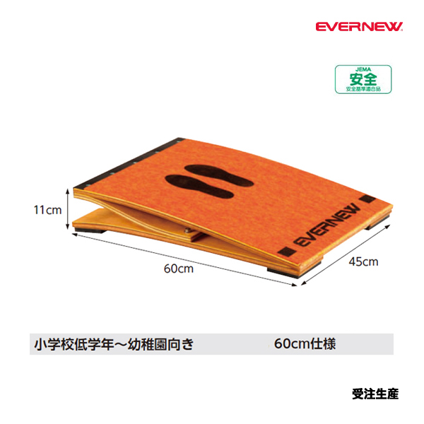 JEMA(文科省認可の一般社団法人:日本教材備品協会の略称)の安全基準適合品(有害6物質の放散が当協会基準以下)である。上面には踏み込む足位置にプリントを施しています。