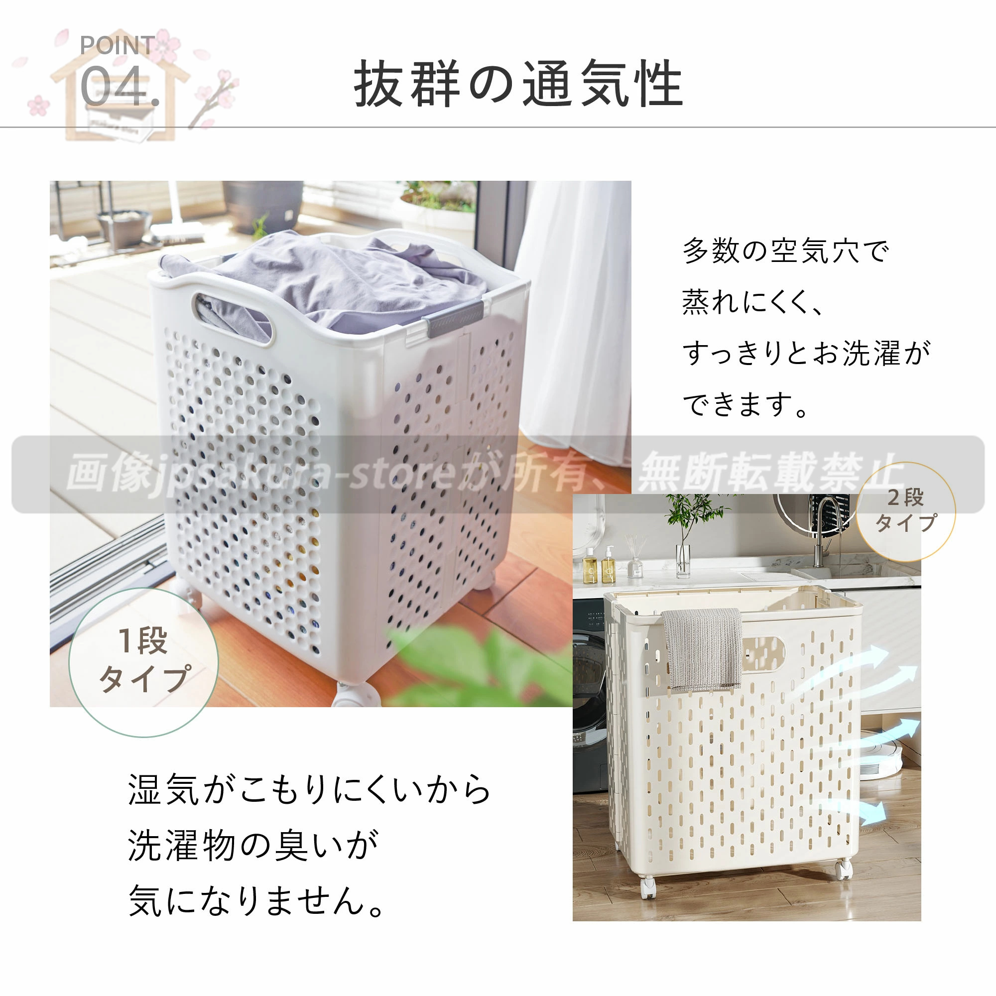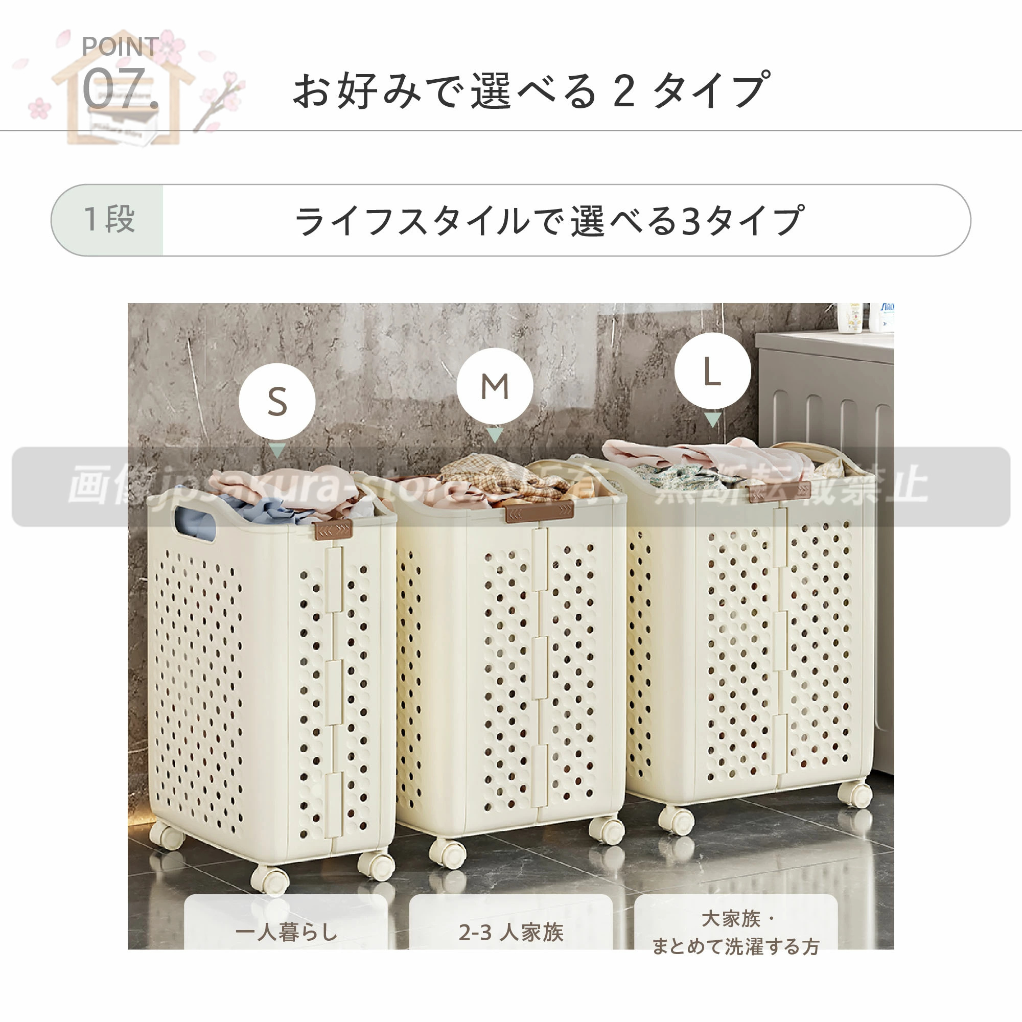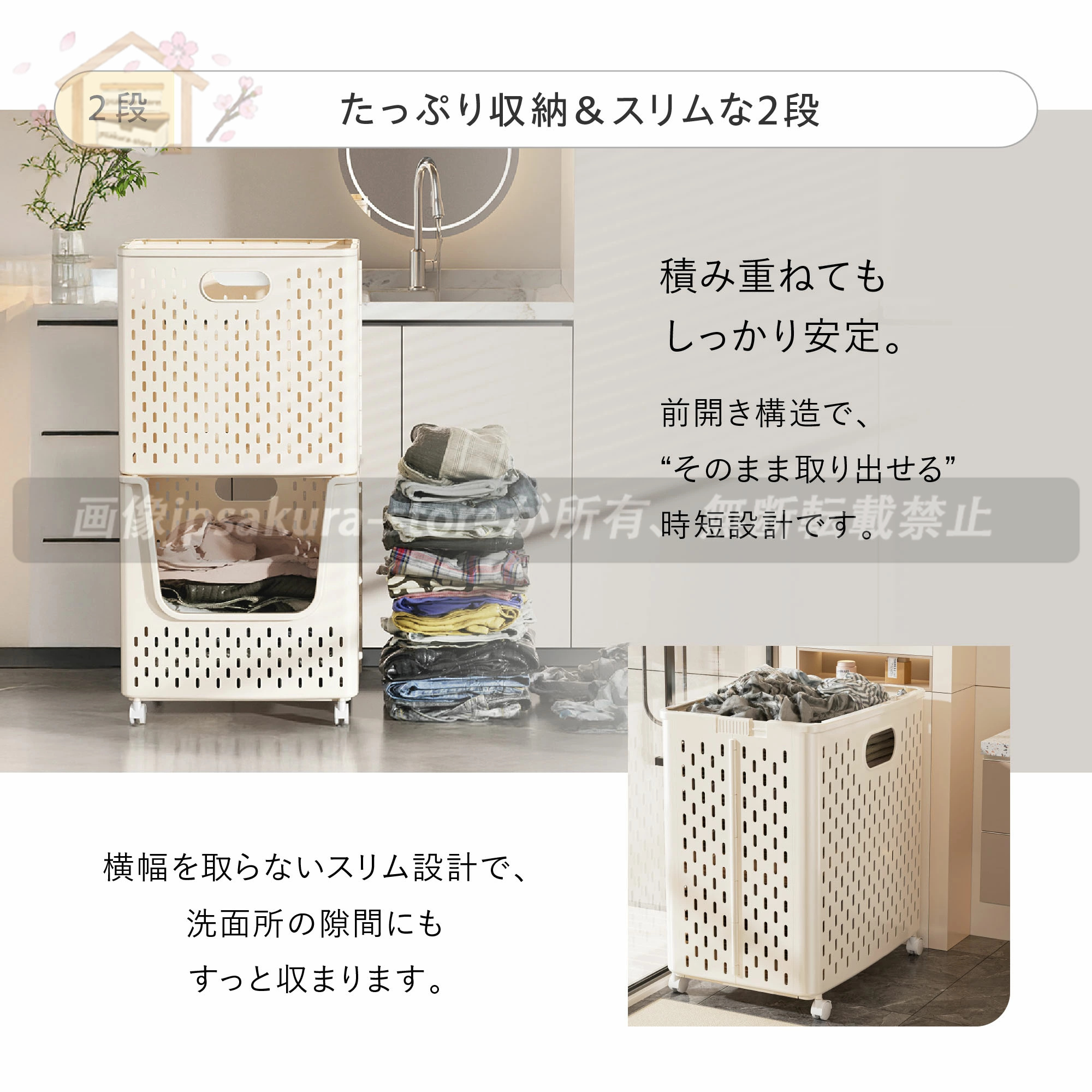 ◆ 洗濯物を入れてキャスターで移動すれば、重たい洗濯物の持ち運びも楽に。