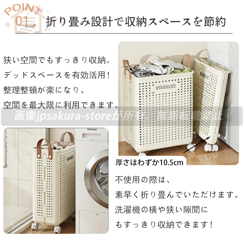 ランドリーバスケット キャスター付き おしゃれ 収納ラック 洗濯かご ランドリー収納 洗濯物入れ バスケット スチール 持ち手付き ワゴン 脱衣かご 洗面所