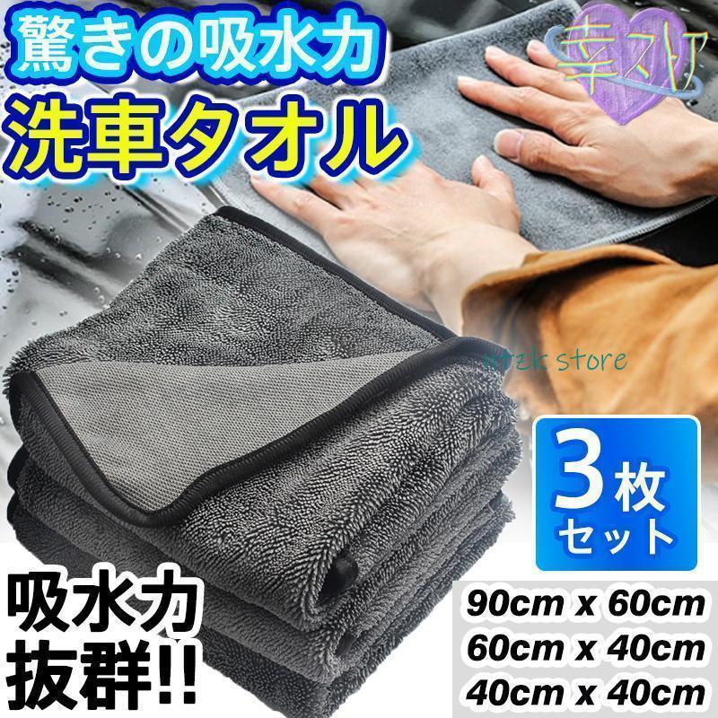洗車タオル 3枚セット 超吸水 大判 吸水 タオル マイクロファイバー 拭き上げ抜群 拭き取り グッズ 手洗い 耐久性 防臭効果 洗車 業務