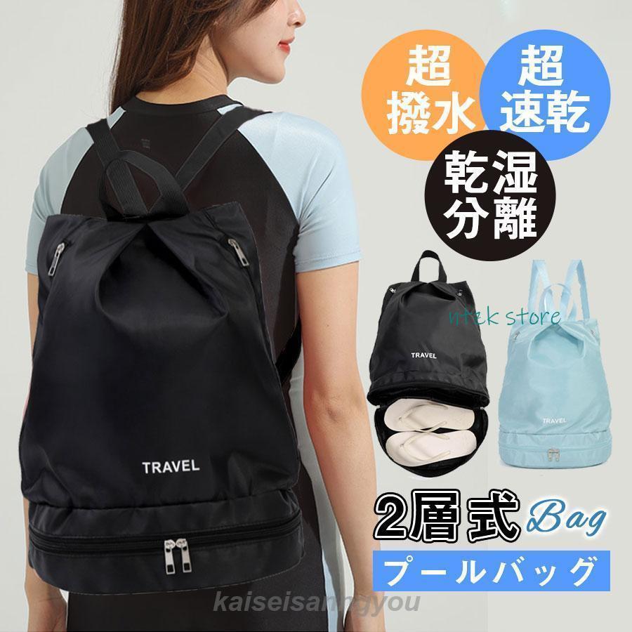 ビーチバッグ プールバッグ 乾湿分離 2層 リュック スイムバッグ 水泳バッグ ナップザック 海 中学生 高校生 キッズ ヨガ 旅行 収納力 可愛い