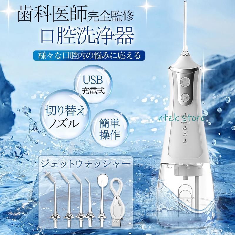 口腔洗浄器 ジェットウォッシャー 口腔洗浄機 歯ジェットウォッシャー 歯垢除去 替えノズル4本付き ウォーターフロス 歯間 歯石ジェット洗浄 USB充電式 電動 大容量 IPX7防水 簡単操作 省スペース 口臭に矯正し 電動歯ブラシ 水流歯ブラシ コンパクト