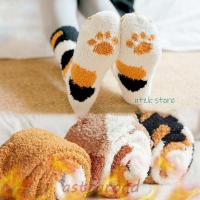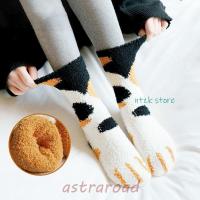 靴下 ソックス 6足セット レディース もこもこ 猫 ネコ 厚手 防寒 ルームソックス 秋冬 モコモコ 冷え取り クルーソックス あったか