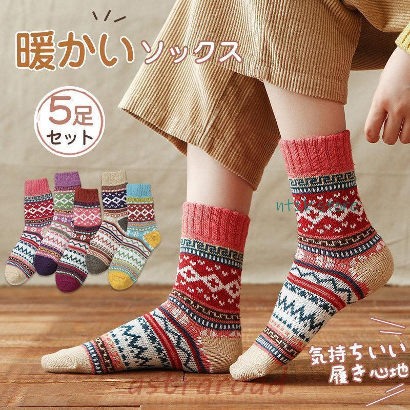 靴下 レディース 5足セット ショットソックス 裏パイル 抗菌 防臭 綿混 吸湿 発熱 ルームソックス カラフル 暖かい 保温 厚手 冷え対策