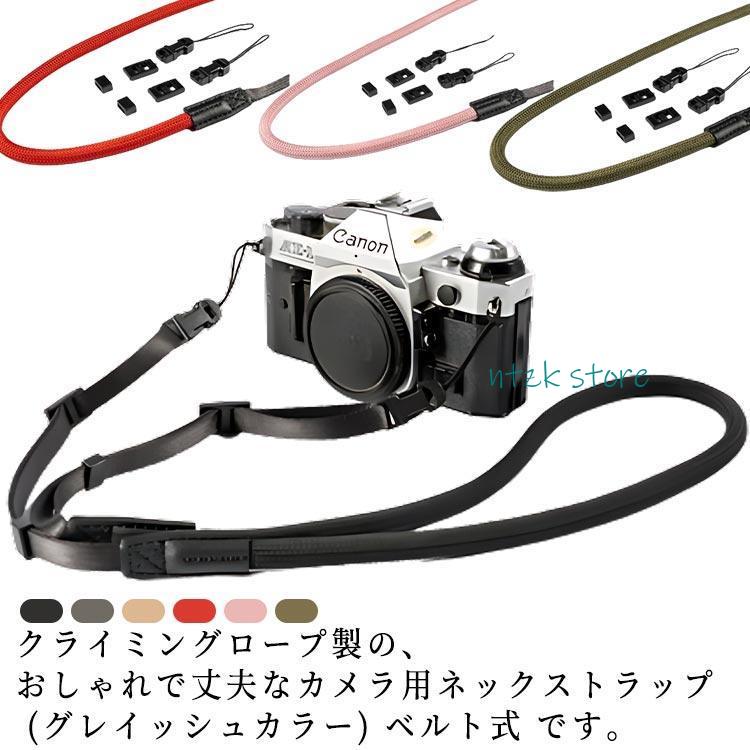 ネックストラップ クライミングロープ カメラストラップ クライミングロープ カメラ用 ナイロン 長さ調整機能付き 女性 男性 丸ひも ベルト式 全6色