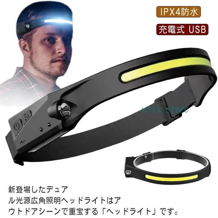ヘッドライト 充電式 USB 反射ストラップ LEDデュアル光源 5種点灯モード 73g超軽量 高輝度 アウトドア用ヘッドライト IPX4防