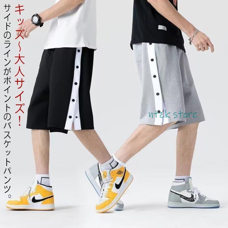 女の子 大人 サイドボタン バスケットボールパンツ ショートパンツ バスケットパンツ スナップボタン 夏 サイドライン 裾ボタン 男の子 ジュニア 半