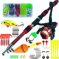 子供用釣りセット 釣り竿セット 1.8M釣り竿 コンパクトロッド 伸縮式釣り竿 スピニングリールセット 釣り具 釣り糸 釣りルアー 餌 浮き 入門 初