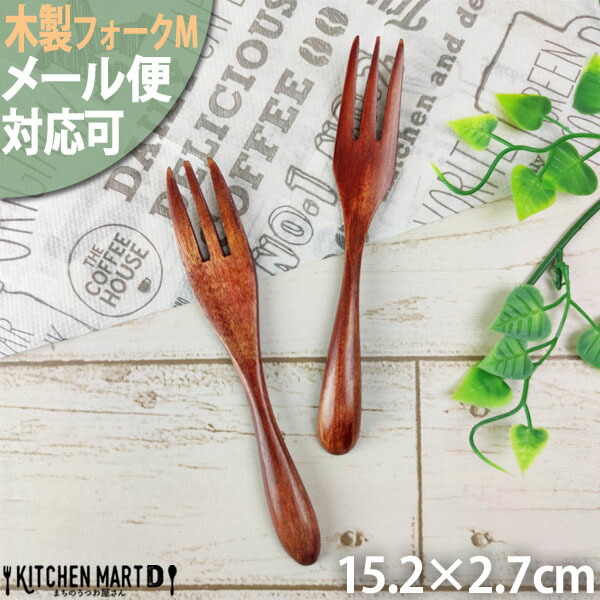 メール便対応可 木製 木ケーキフォーク M 15cm ブラウン ウッドバーニング 天然木 子供 子供用 デザートフォーク まちのうつわ屋さん