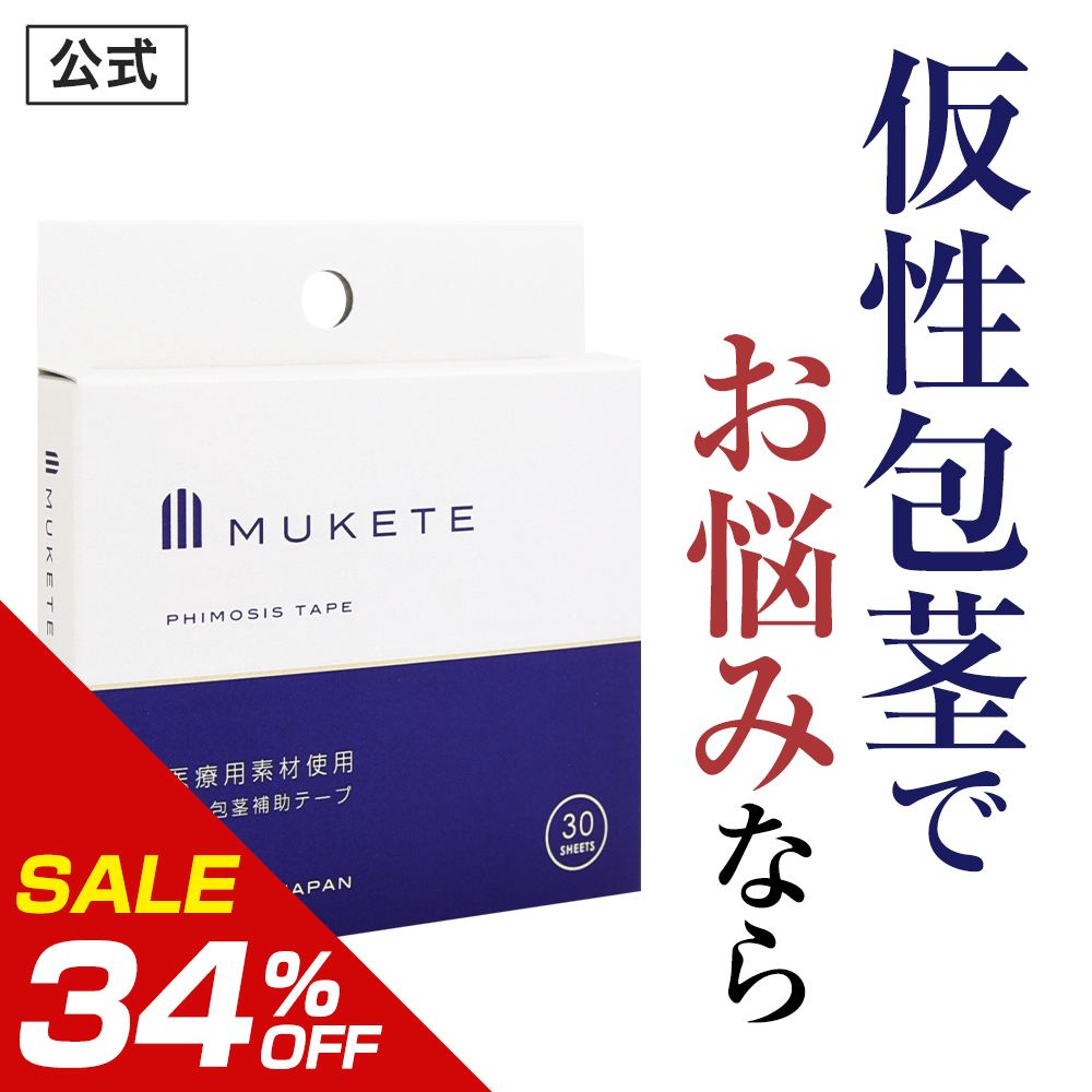 包茎 ( ほうけい ) 仮性包茎 補助テープ MUKETE ムケテ 皮剥き 医療テープ 低刺激 矯正 日本製 包皮 簡単 セルフケア 自力 男性 メンズ (1箱 30枚入)