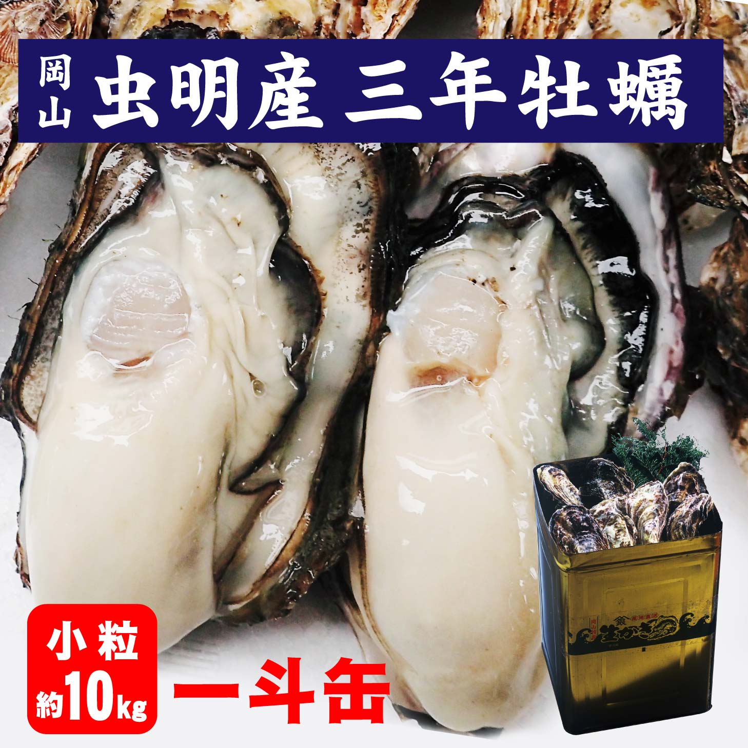 殻付き牡蠣 一斗缶 岡山産 10kg前後 小粒 加熱調理用 3年もの