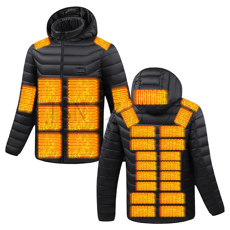 電熱ジャケット 長袖【31箇所発熱 4つスイッチで前後独立温度制御】バッテリー選択可能 3段階温度調節 フード付き 電熱コート ヒータージャケット バイク 速暖