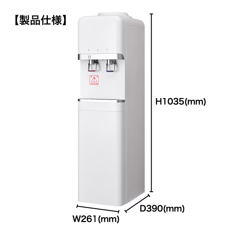 リビングやキッチンなどの限られたスペースに設置することができるメンテナンス性を重視したシンプルなデザイン 横幅約26cmのウォーターサーバーです。