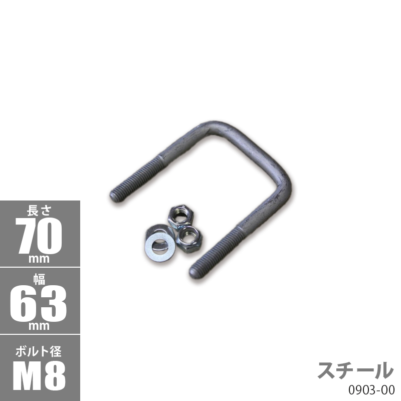 スチール角型 Uボルトキット 70 x 63 x φ8 トレーラー部品 ボートトレーラー 0903-00