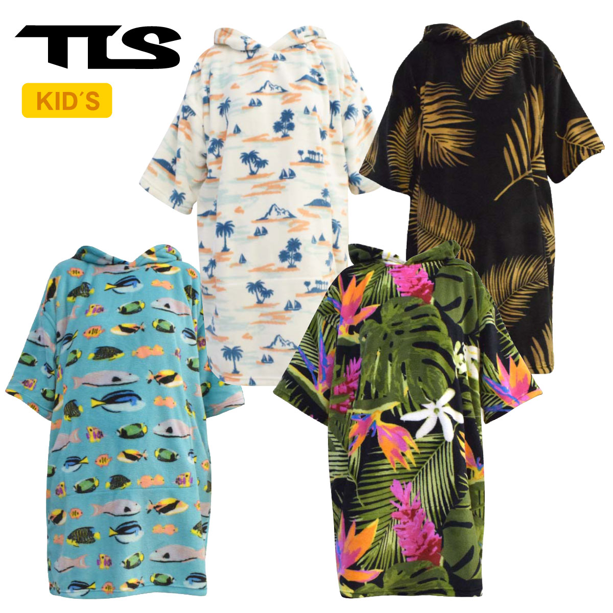 TLS ツールス キッズ 100-120cm 着替タオル マイクロファイバー ポンチョ プール 海水浴 OH933-120-