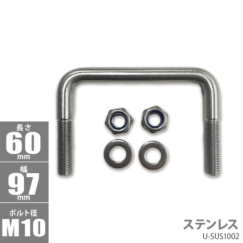 ステンレス 角型 Uボルト コ型ボルト 60 ×97× φ10 U-SUS1002