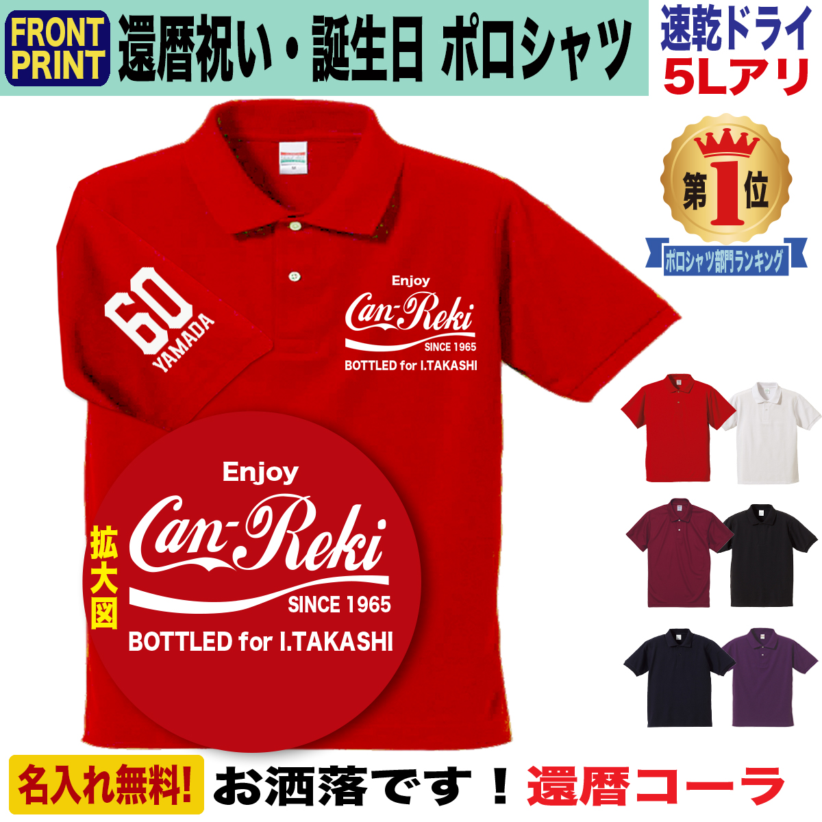還暦祝い ゴルフ ポロシャツ 名入れ プレゼント 上司 先輩 父 母 男性 女性 60歳 赤 おしゃれ 大きいサイズ コカコーラ