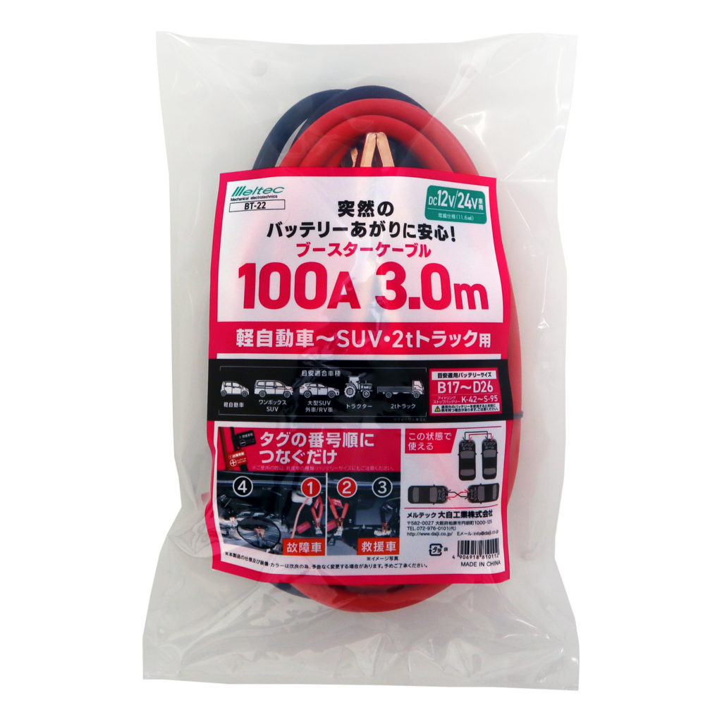 大自工業 BT-22 ブースターケーブル 100A 3m DC12V/24V メルテック meltec