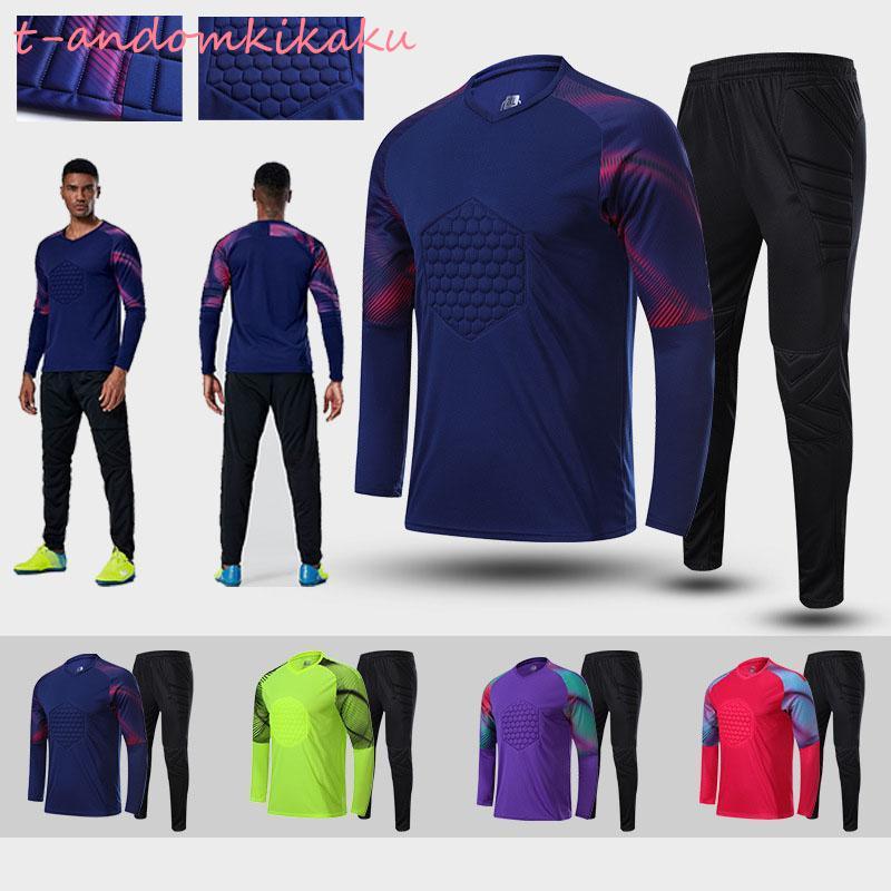 サッカー ゴールキーパーウェア 上下セットメンズ スポンジマット 長袖 プラクティスパンツ 子供用 大人 ジュニア 試合訓練ゴールキーパー服ユニホーム 速乾